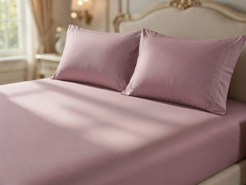 Dusty Rose Cotton Embroidery Bedsheet | 300 TC | King Size